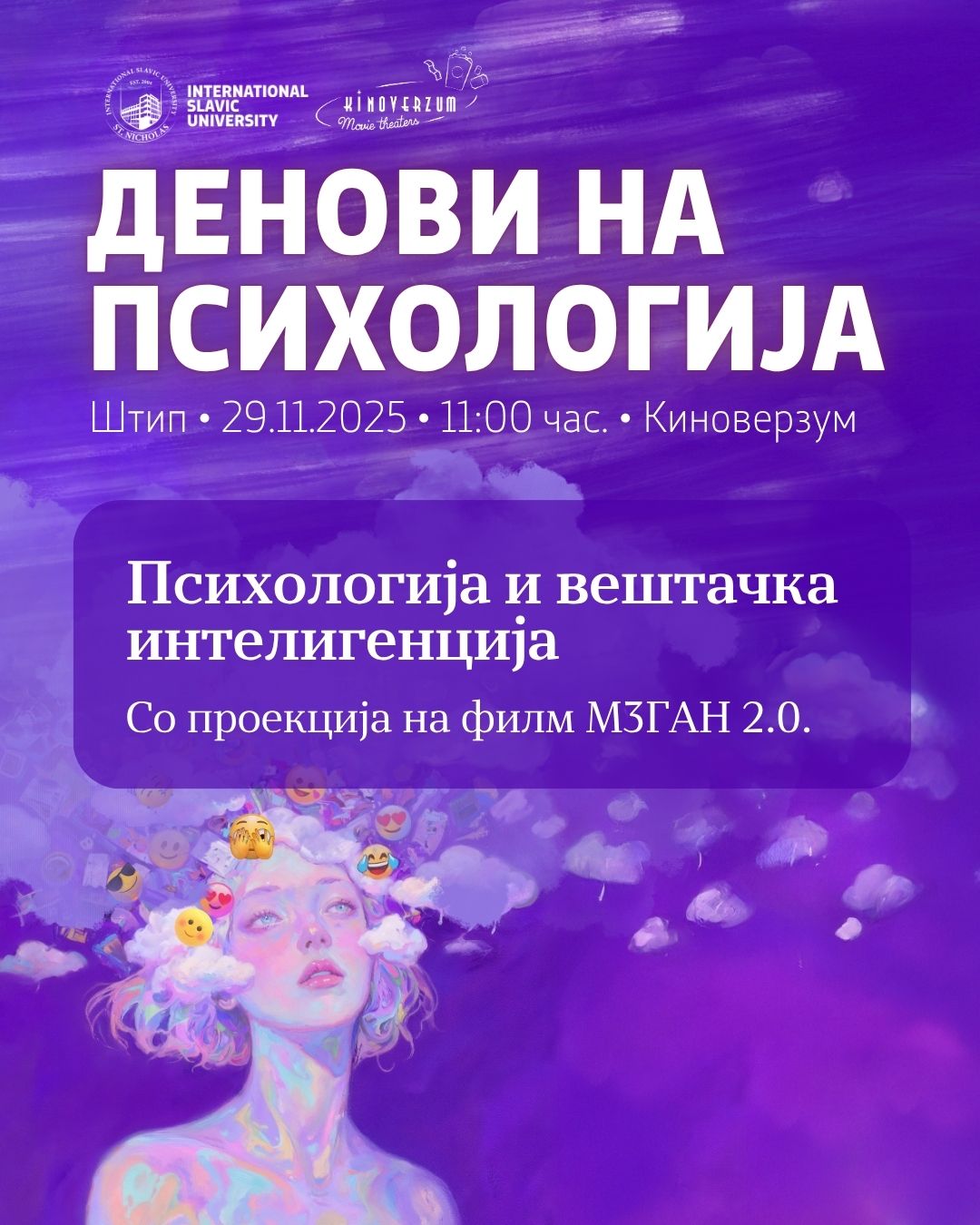 Тема: „Психологија и вештачка интелигенција“ со проекција на филмот „М3ган“