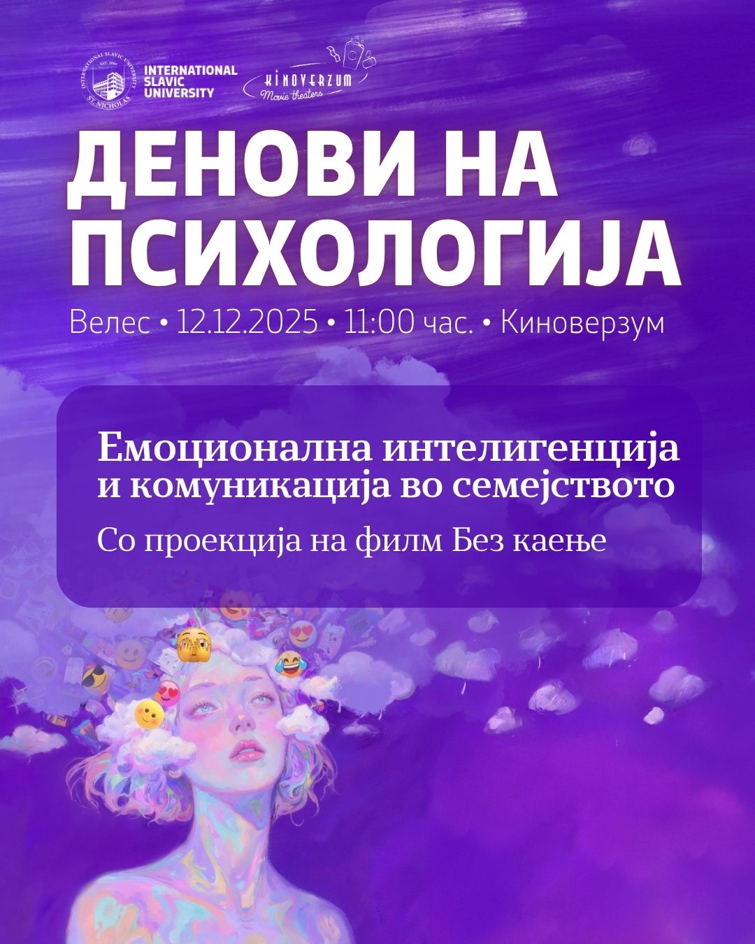 11 ноември 2025Со големо задоволство го најавуваме настанот Денови на психологија 2025, кој годинава го организираме на пет различни локации во соработка со Киноверзум, единствениот македонски ланец на кина.