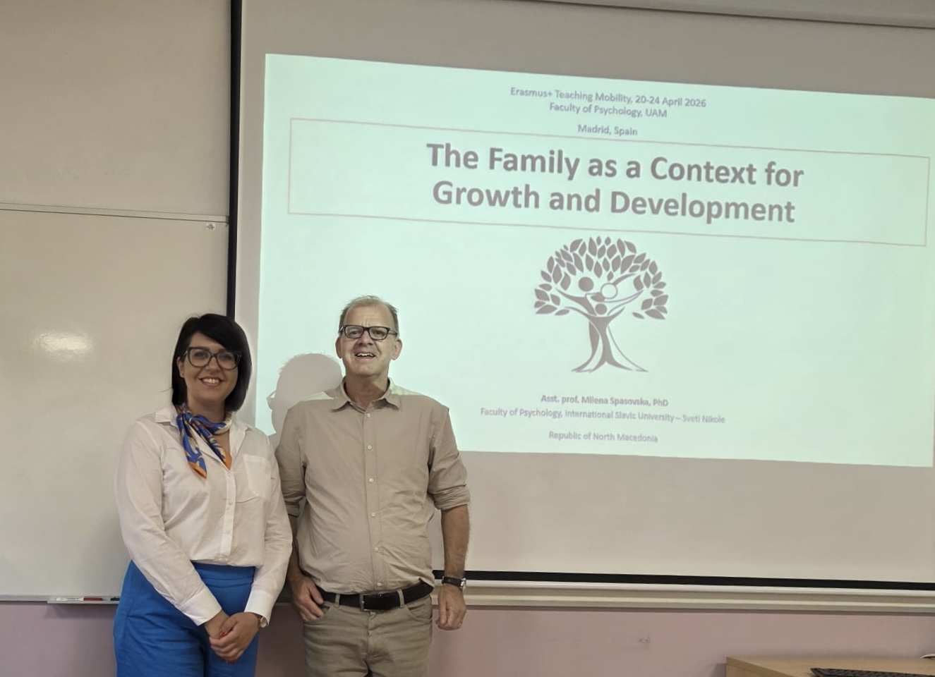 24 април 2026Доц. д-р Милена Спасовска, продекан на Факултетот за психологија при Меѓународен Славјански Универзитет, во изминатиот период реализираше успешна посета на Автономниот универзитет во Мадрид, каде одржа предавање на тема: