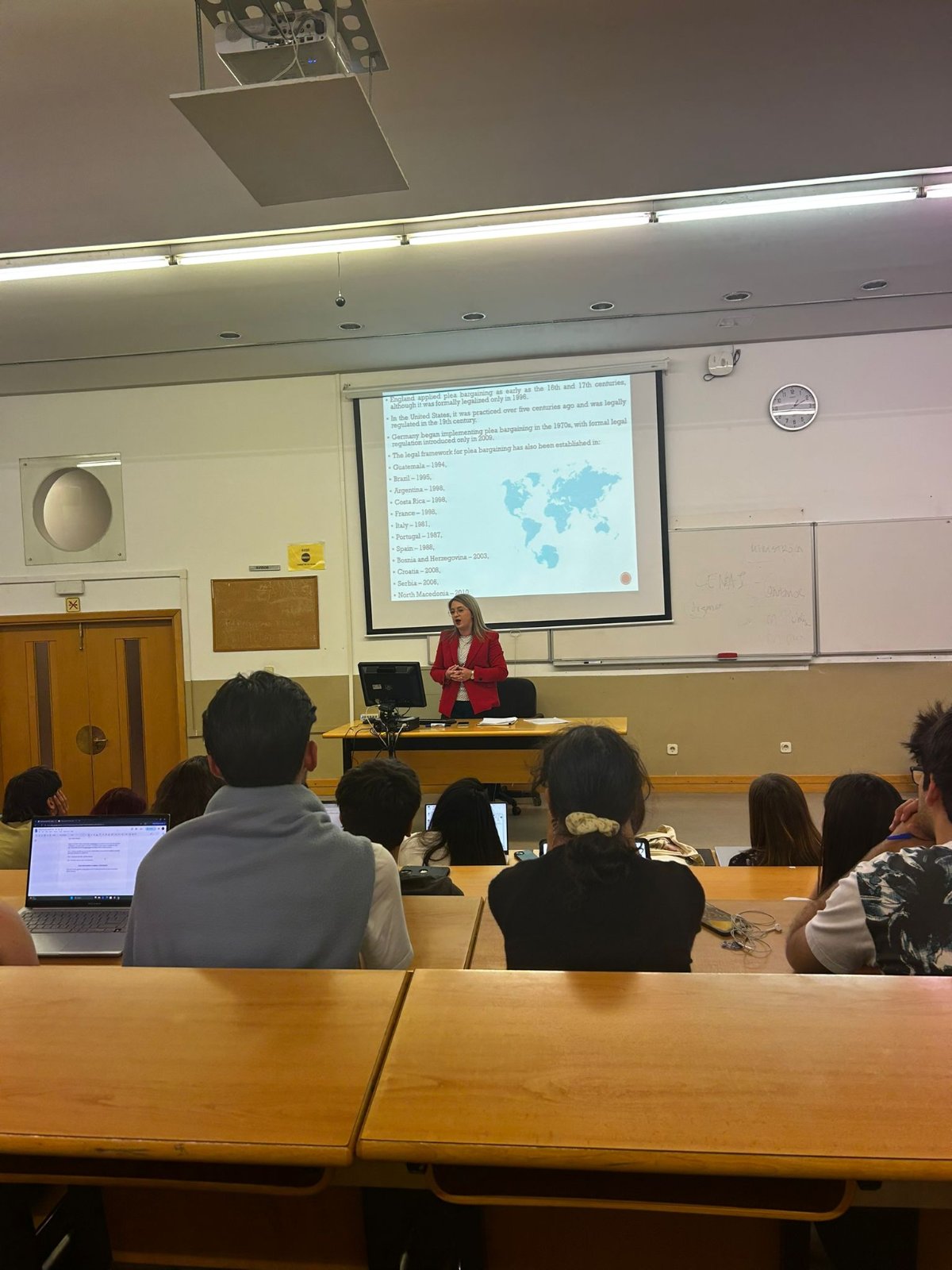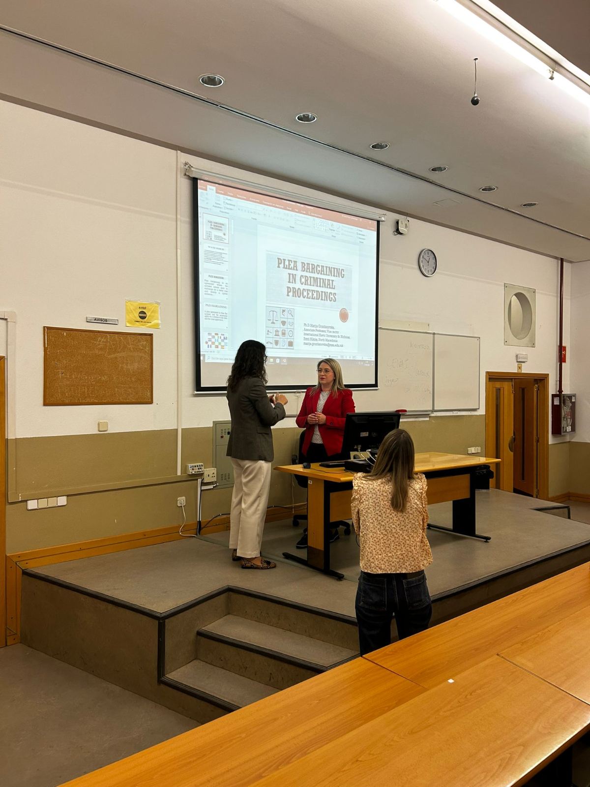 Во рамки на својата академска посета на еден од најреномирамните Правни факултети во Шпанија, таа одржа предавање за студентите од прв и втор циклус на тема „Спогодувањето во кривичното право“.